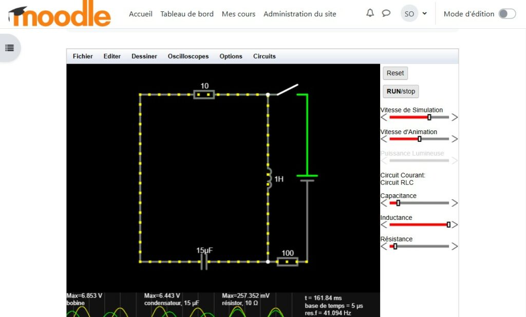 Ce plugin Moodle permet aux enseignants d’intégrer directement des circuits électroniques interactifs dans leurs cours, grâce à l’intégration de CircuitJS (un simulateur de circuits en ligne open source, largement utilisé dans l’enseignement et la recherche).